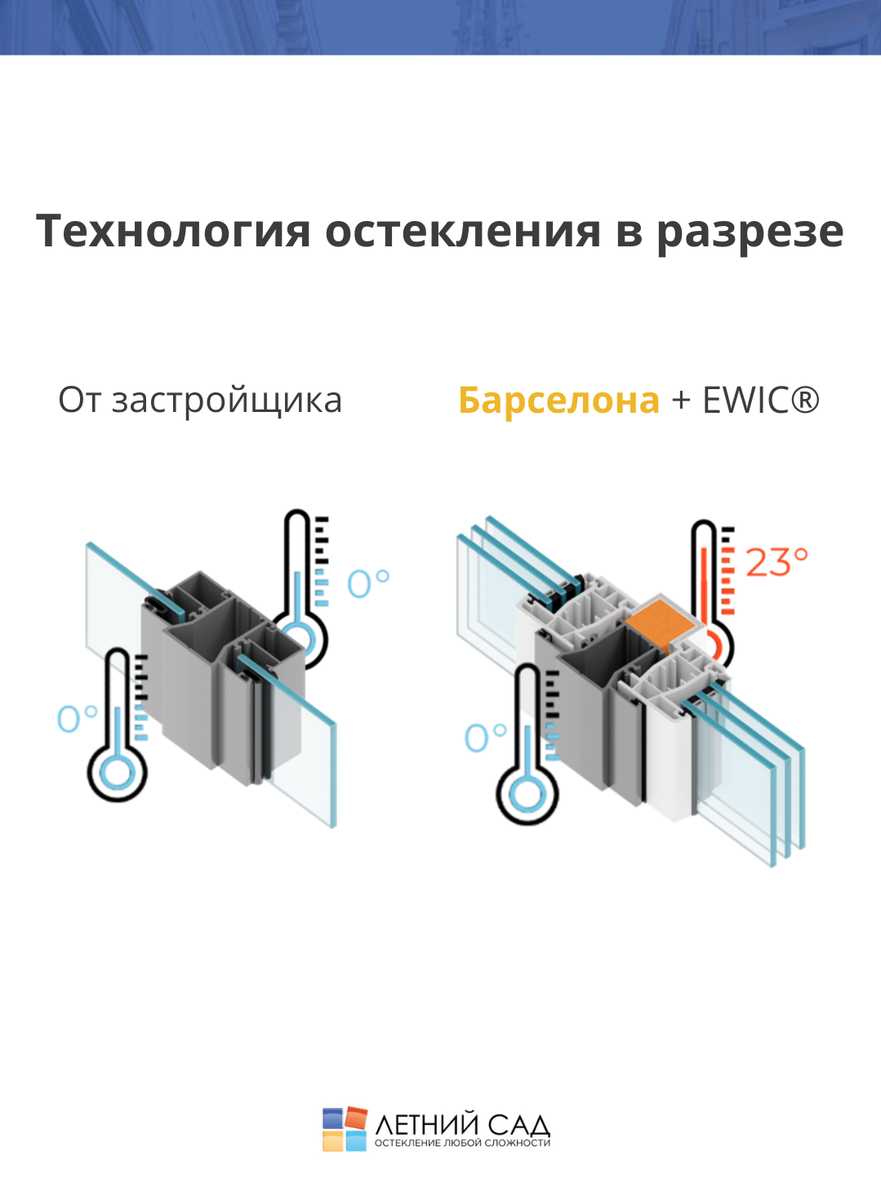 БАРСЕЛОНА – уникальная технология компании «Летний сад» позволяющая сохранить необходимый уровень тепла для более комфортного использования балкона.